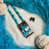 About the Product: This delicate piece of Shika is handcrafted to perfection.Your every moment deserves an elegance and we tune in. Terracotta neckwear with studs in teal shades.The neckwear comes with adjustable thread for the closure.
