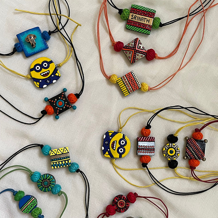 About the Product: This is a bond of love, a bond of togetherness; it’s a thread that binds our lives and our hearts. Terracotta eco-friendly assorted rakhis handcrafted to perfection. The rakhi comes with nylon thread.