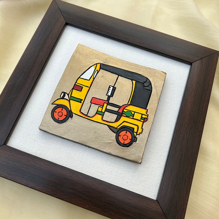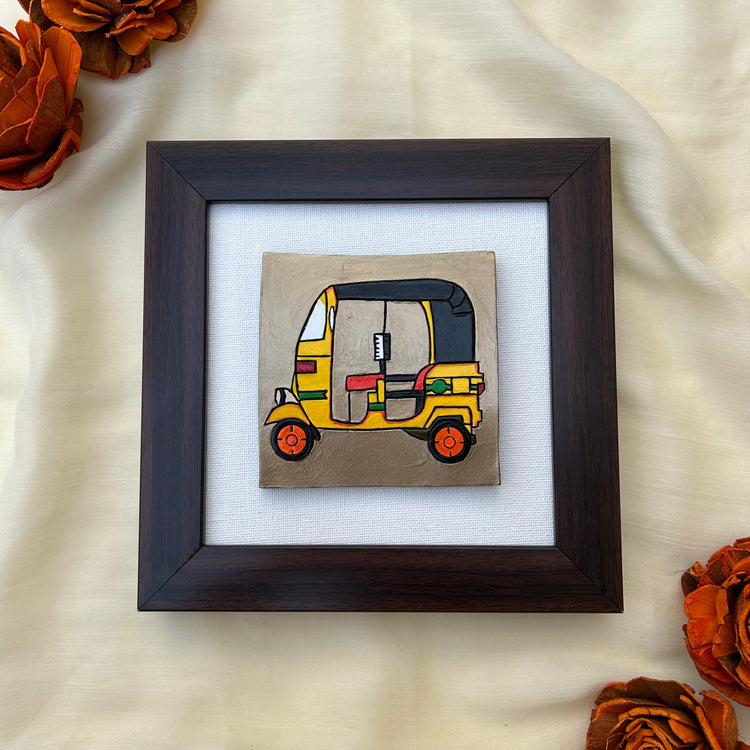 About the Product: Shika's handcrafted home decors are an epitome of creativity and innovation. Terracotta wall picture. It comes with a 1 inch frame. The Auto rickshaw 🛺 is handmade with terracotta clay and it is made from the mother earth. And the terracotta is stuck on the canvas frame…
