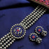 About the Product: Shika blended terracotta with kemp stones to get a brilliant new look for your outfit. Kemp stones are semi-precious stones and they dazzle in bright ambiance. What makes this more special is that this is completely handcrafted. Terracotta choker and jhumkas with kemp stone embellishments. The neckwear comes with an adjustable chain for the closure.