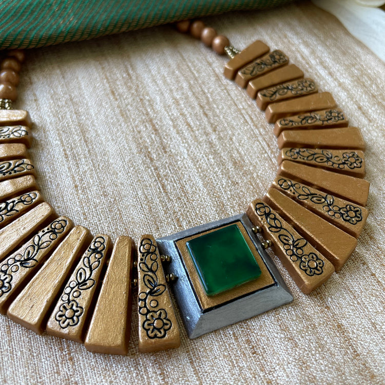About the product - Signatures of Shika! Terracotta neckwear in stunning hues . It is paired with studs. The set comes with an adjustable thread for the closure.