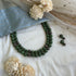 About the Product: This delicate piece of Shika is handcrafted to perfection.Your every moment deserves an elegance and we tune in. Terracotta neckwear with studs in green and gold shades.The neckwear comes with adjustable thread for the closure.