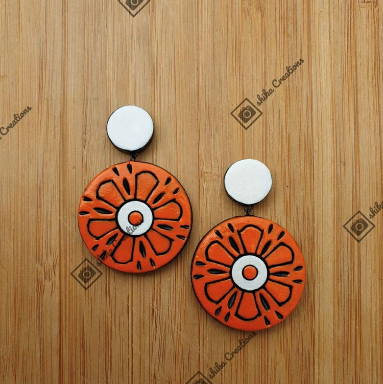 About the Product: Terracotta 2 step dangler studs in shades of orange.