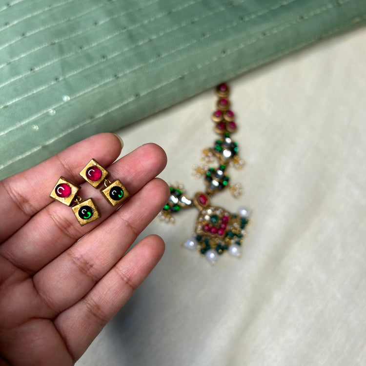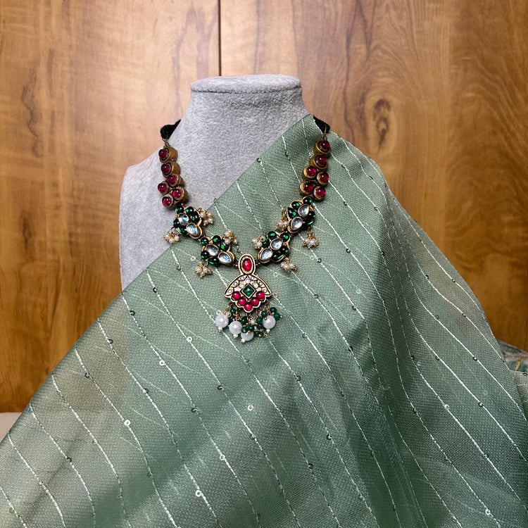 About the product: Shika blended terracotta with kemp stones to get a brilliant new look for your outfit. Kemp stones are semi-precious stones and they dazzle in bright ambiance. What makes this more special is that this is completely handcrafted. Terracotta neckwear with kemp stone embellishments and studs. The neckwear comes with adjustable thread for the closure.