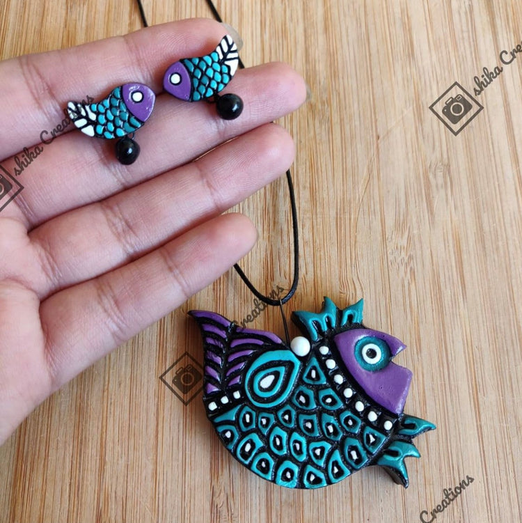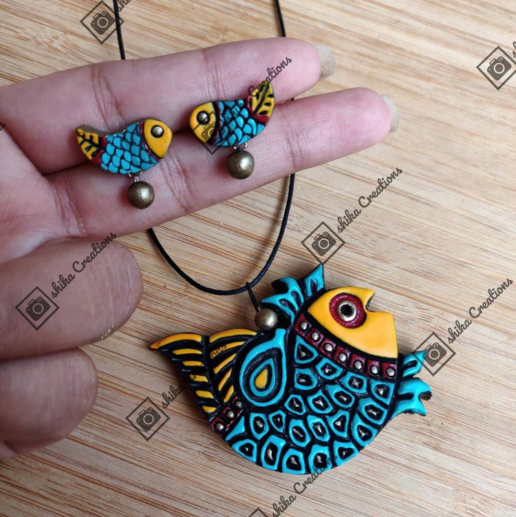About the Product: Shika's regular wear sets are simple, goes with everything, and can be worn every day to get a sophisticated look. Terracotta pendant with studs in vibrant shades. The neckwear comes with an adjustable dori for the closure.