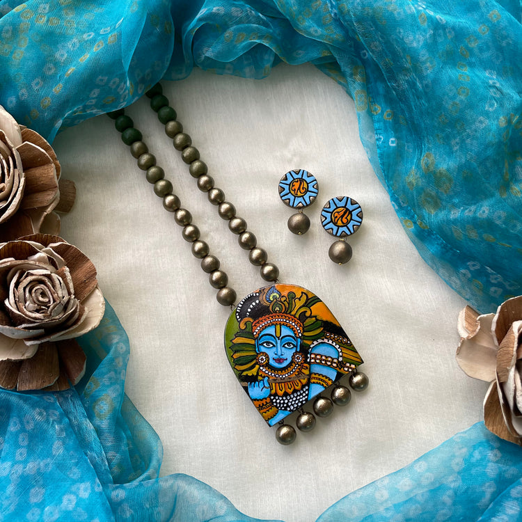 About the product - Signatures of Shika! Terracotta Krishna neckwear in stunning hues with studs. The set comes with an adjustable thread for the closure.