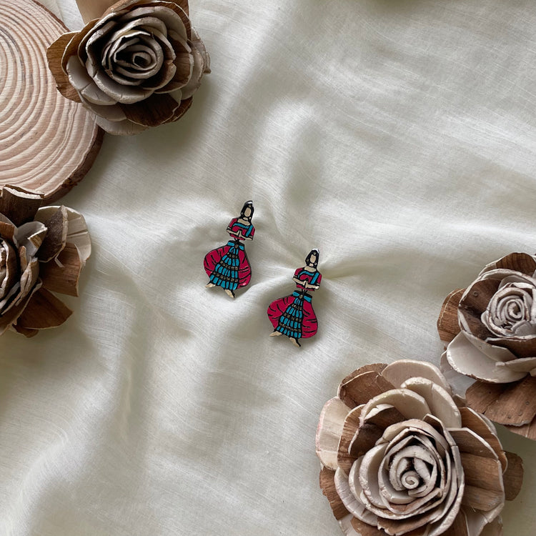 About the Product: Shika's handcrafted danglers are timeless and look chic despite ever-changing fashions. Terracotta girl danglers in the vibrant Bharatanatyam outfit.