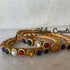 About the Product: You must not be afraid to sparkle a little brighter, darling! Terracotta navaratna bangle with kundhan stone embellishments. The terracotta pieces are embellished on the silk thread bangle.