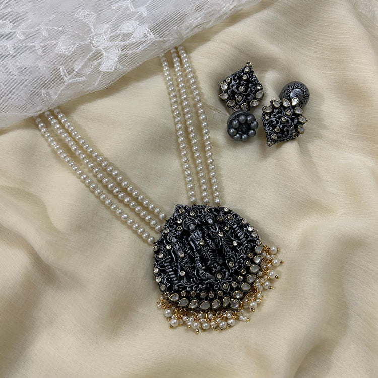 About the Product: This delicate piece of Shika is handcrafted to perfection.Your every moment deserves an elegance and we tune in. Terracotta neckwear with jhumkas in the charming gold and silver hues with kundhan stone embellishments.The neckwear comes with adjustable thread for the closure.