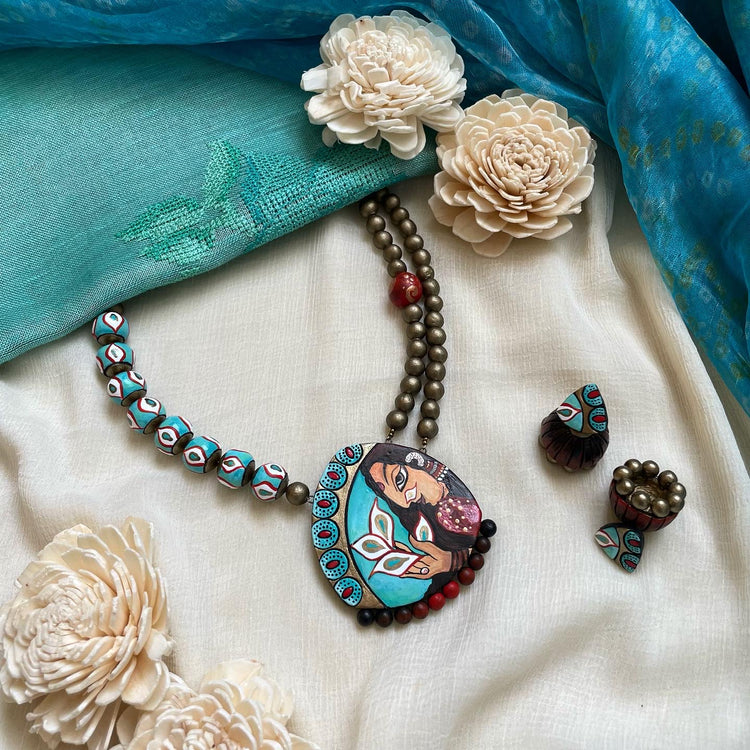 About the product - Signatures of Shika! Terracotta neckwear in stunning hues . It is paired with jhumkas. The set comes with an adjustable thread for the closure.