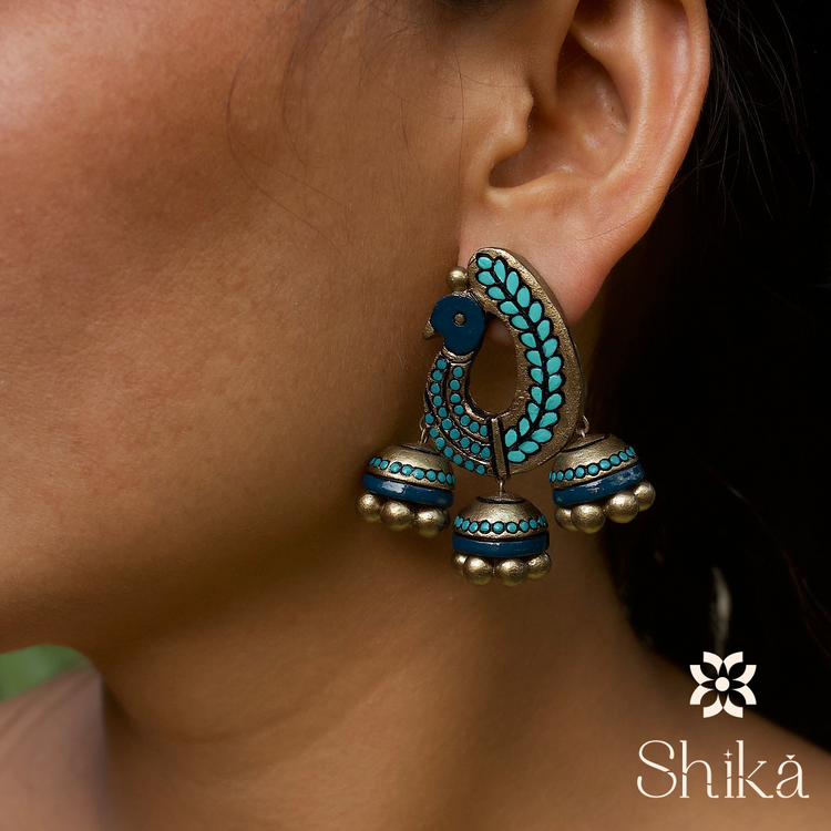 About the Product: You must not be afraid to sparkle a little brighter, Darling! Shika handcrafts the terracotta jhumkas with care and perfection. Terracotta jhumkas in shades of tear.