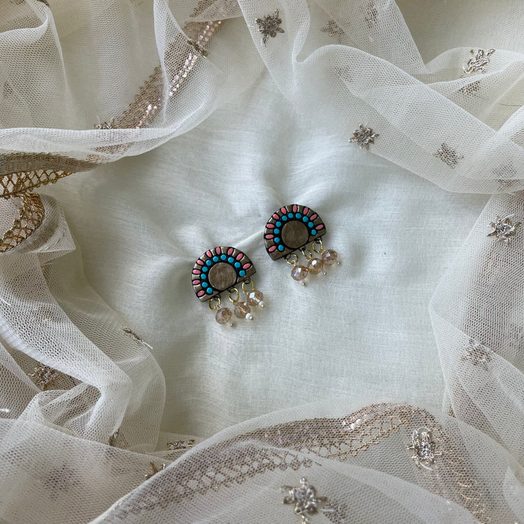 About the Product: Shika's handcrafted danglers are statement earrings that are great for making a powerful impressions. Terracotta step dangling studs in amusing shades.