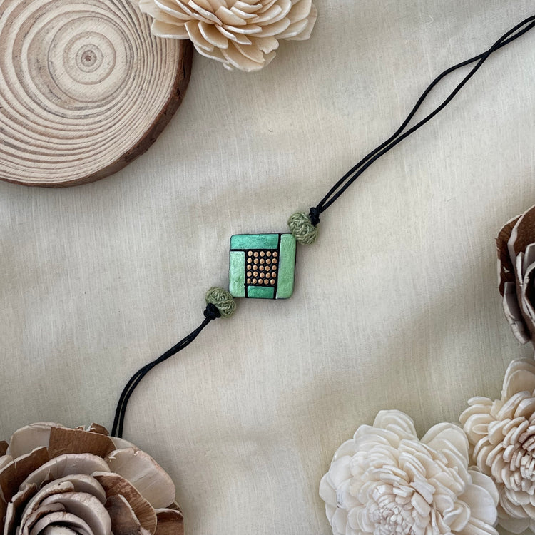 About the Product: This is a bond of love, a bond of togetherness; it’s a thread that binds our lives and our hearts. Terracotta eco-friendly rakhis handcrafted to perfection in rustic shades. The rakhi comes with nylon thread. The names can be customised on the rakhis.