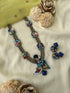 Paired with matching earrings, this necklace is more than an accessory; it’s a tribute to the women who weave dreams into art. The earthy texture of terracotta, blended with vibrant hand-painted hues and the deep charm of blue stone embellishments, makes it perfect for ethnic ensembles, festive occasions, or even as a statement collectible for art lovers.