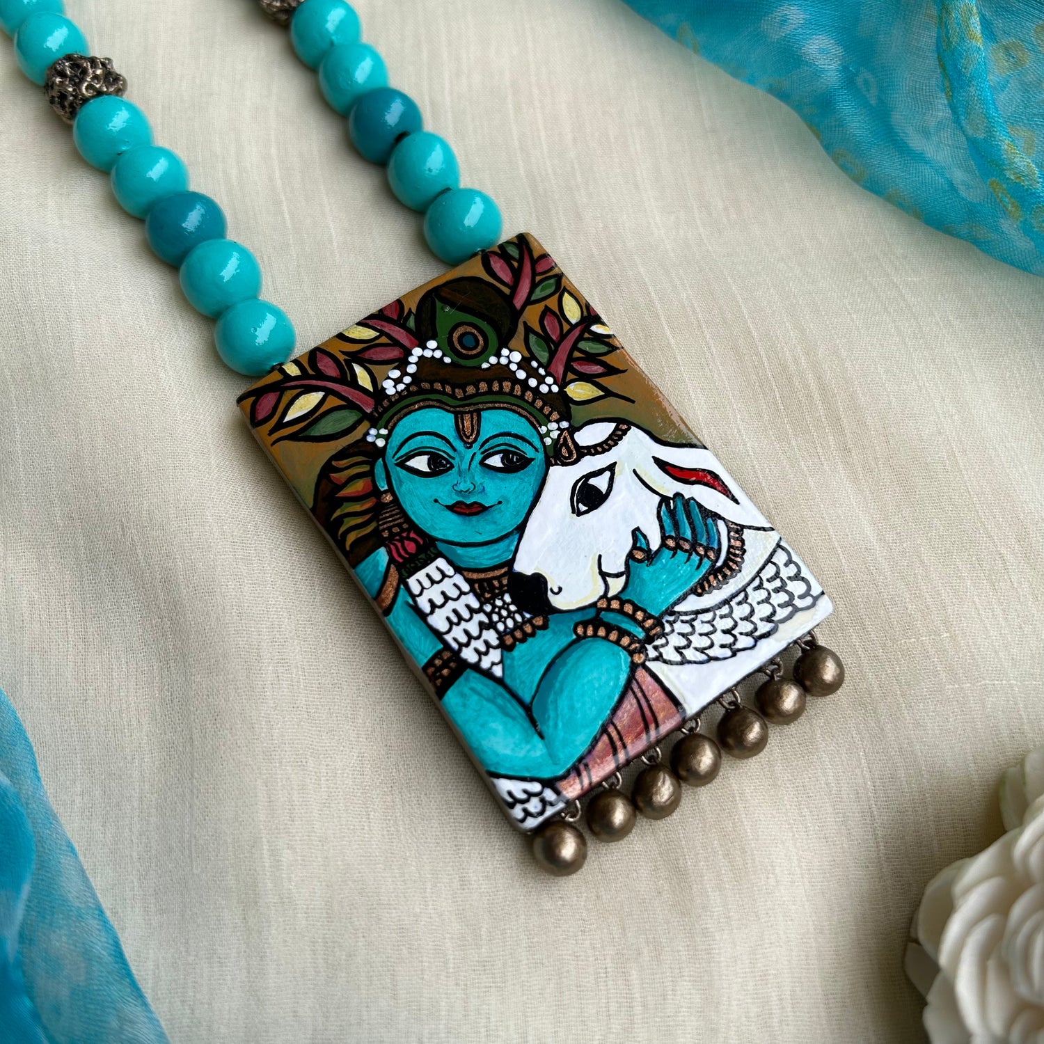 About the Product: This delicate piece of Shika is handcrafted to perfection.Your every moment deserves an elegance and we tune in. Terracotta neckwear with studs in teal shades.The neckwear comes with adjustable thread for the closure.