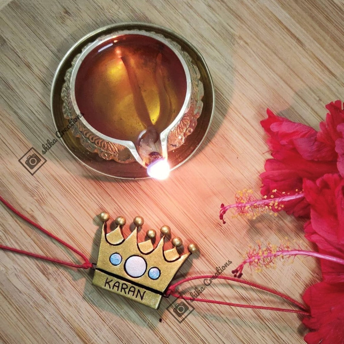 About the Product: This is a bond of love, a bond of togetherness; it’s a thread that binds our lives and our hearts. Terracotta eco-friendly rakhis handcrafted to perfection in golden wrap. The rakhi comes with nylon thread. Name on the rakhis can be customised.