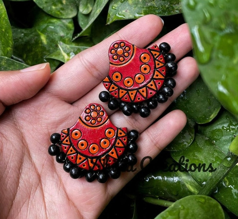 About the Product: Shika finely handcrafts studs that are simple but significant. Terracotta big studs in hues of flame with dangling terracotta beads.