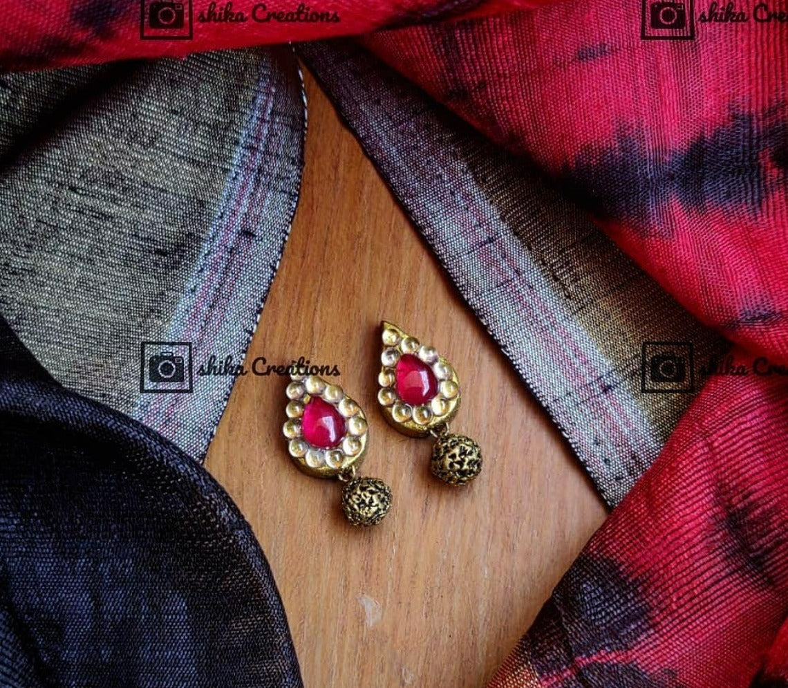 About the Product: Shika finely handcrafts studs that are simple but significant. Terracotta studs with kemp stone embellishments.