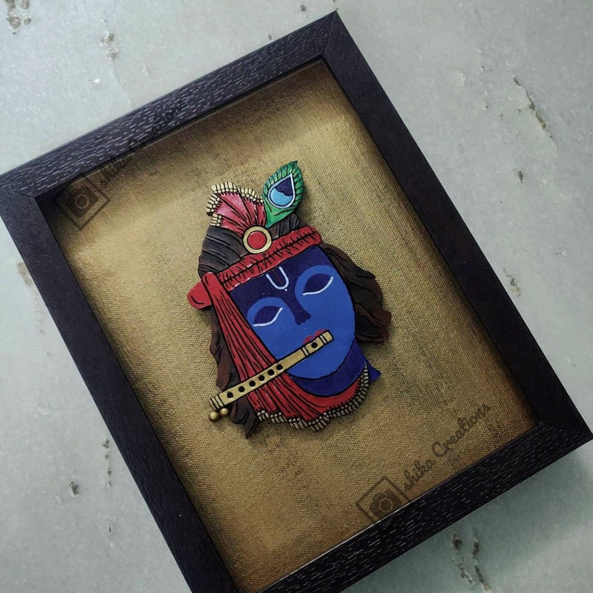 About the Product: Shika's handcrafted home decors are an epitome of creativity and innovation. Terracotta Krishna wall picture. It comes with a 0.5 inch black frame.