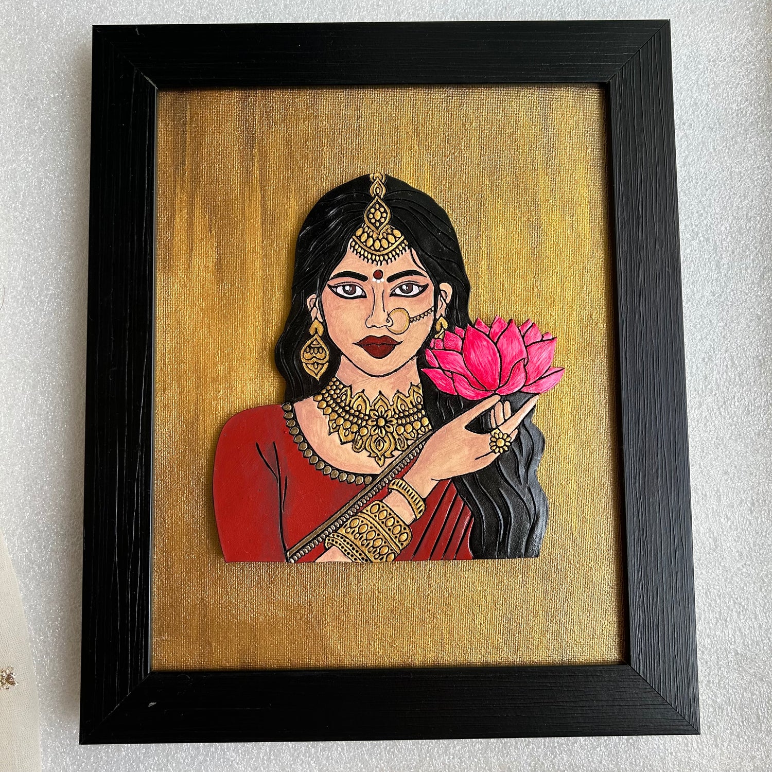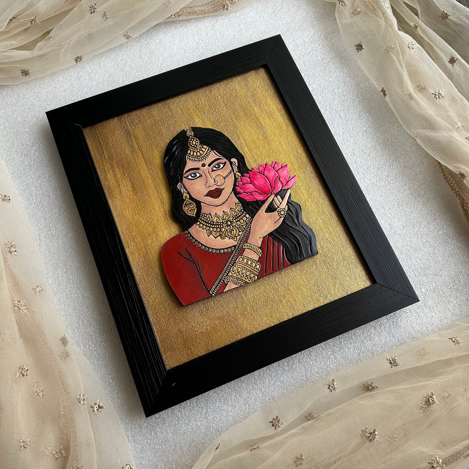 About the Product: Shika's handcrafted home decors are an epitome of creativity and innovation. Terracotta women wall picture. It comes with a 1 inch frame.
