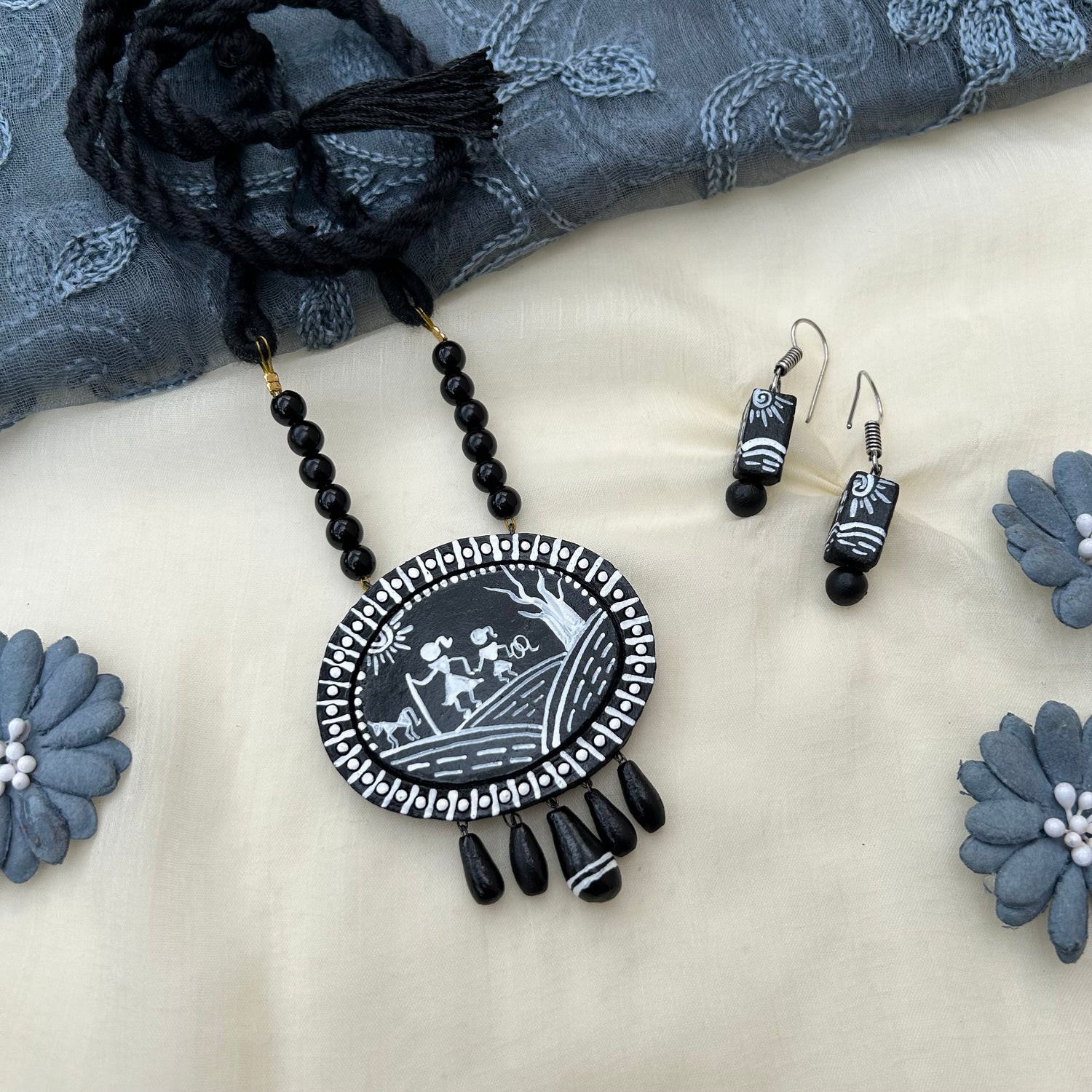 About the Product: Shika's regular wear sets are simple, goes with everything, and can be worn every day to get a sophisticated look. Terracotta pendant with earings in stunning shades. The neckwear comes with an adjustable dori for the closure.