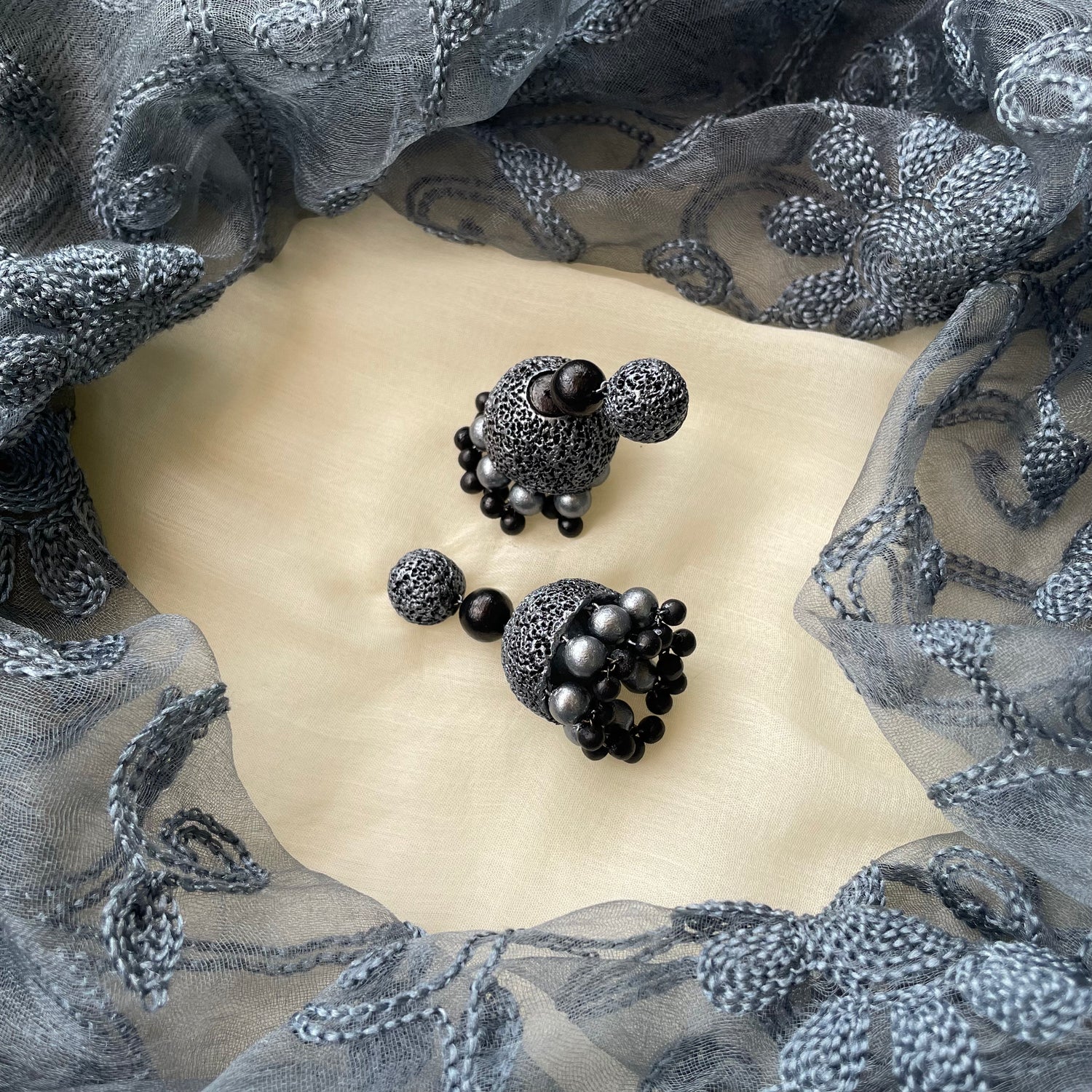 About the Product: You must not be afraid to sparkle a little brighter, darling! Shika handcrafts the terracotta jhumkas with care and perfection. Terracotta jhumkas in gold and black hues with dangling layered beads.
