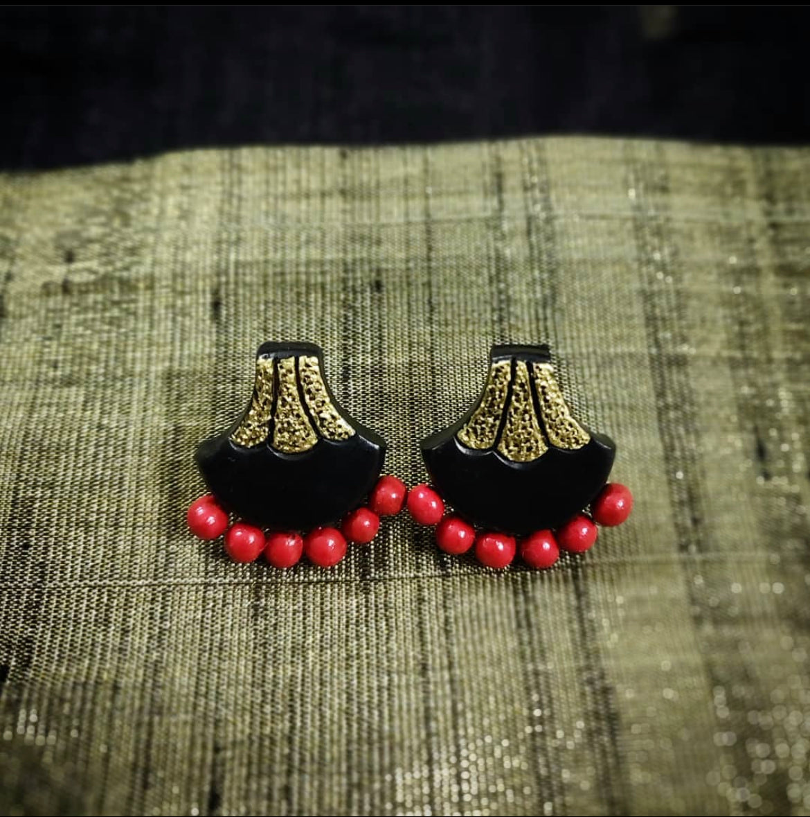 About the Product: Shika finely handcrafts studs that are simple but significant. Terracotta studs with lollipop beads in classic hues.