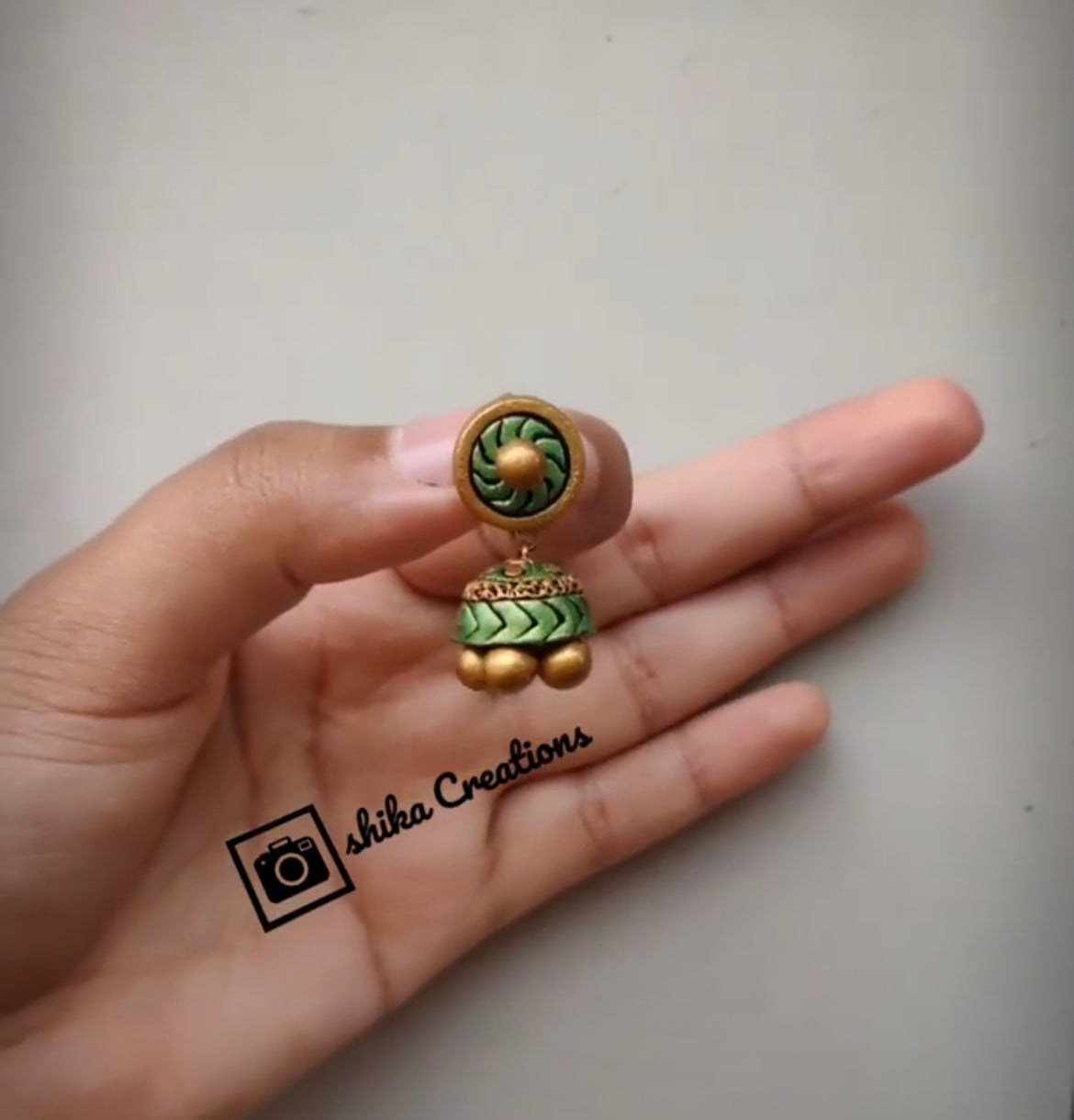 About the Product: You must not be afraid to sparkle a little brighter, darling! Shika handcrafts the terracotta jhumkas with care and perfection. Terracotta jhumkas in pastel green and gold hues