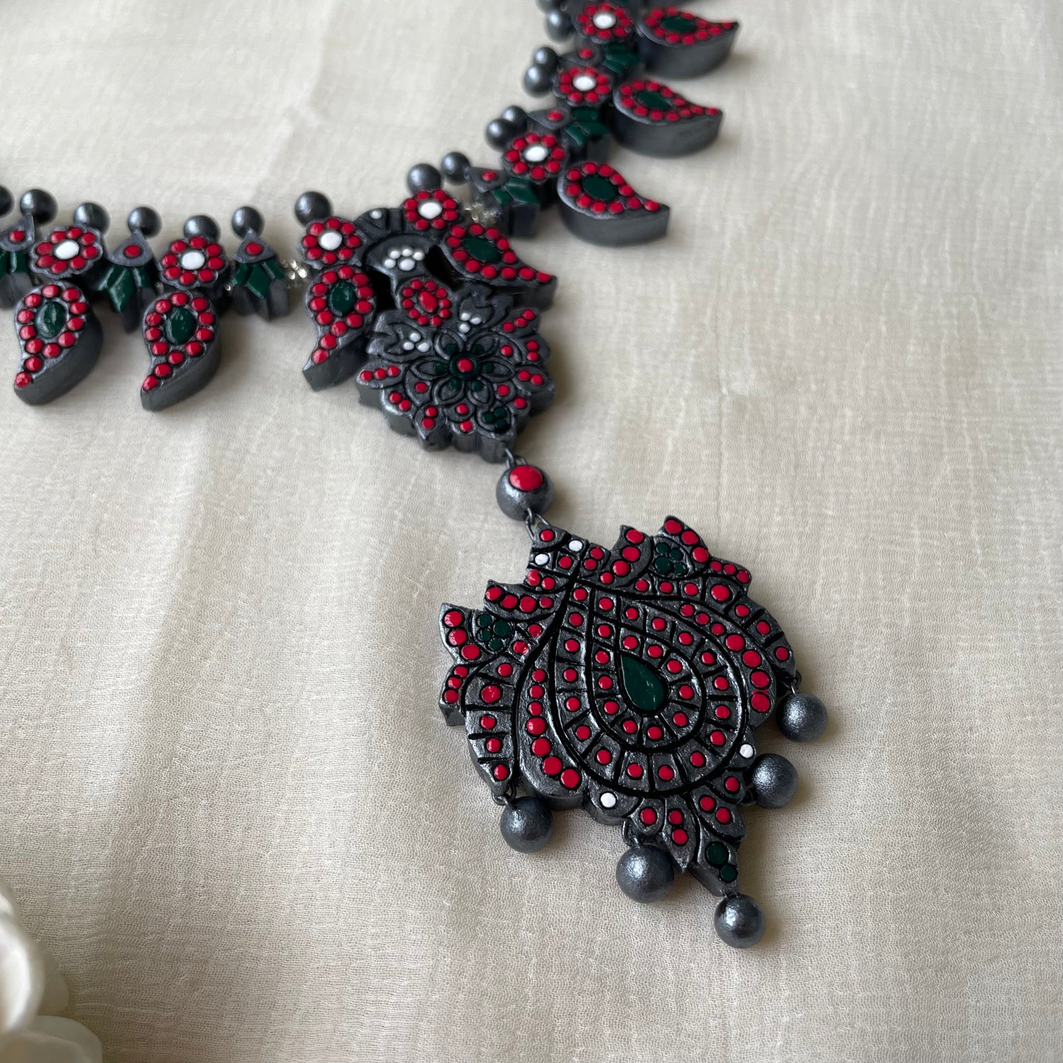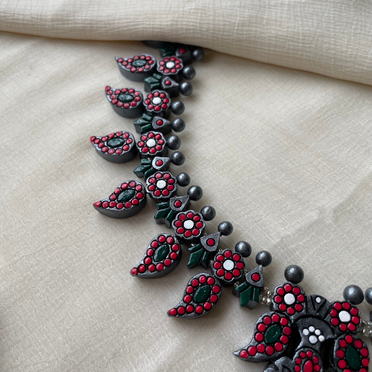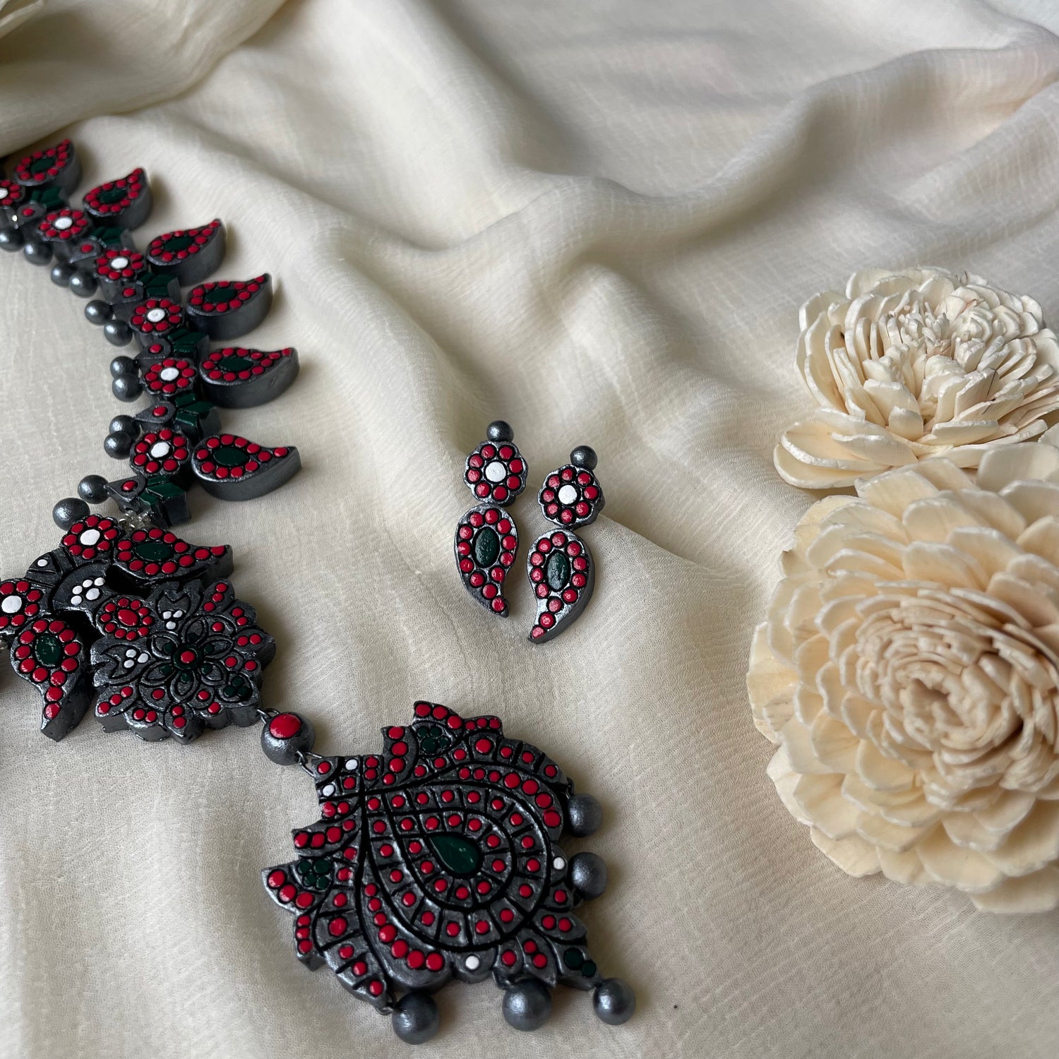 About the product - Signatures of Shika! Terracotta neckwear in stunning hues . It is paired with studs. The set comes with an adjustable thread for the closure.
