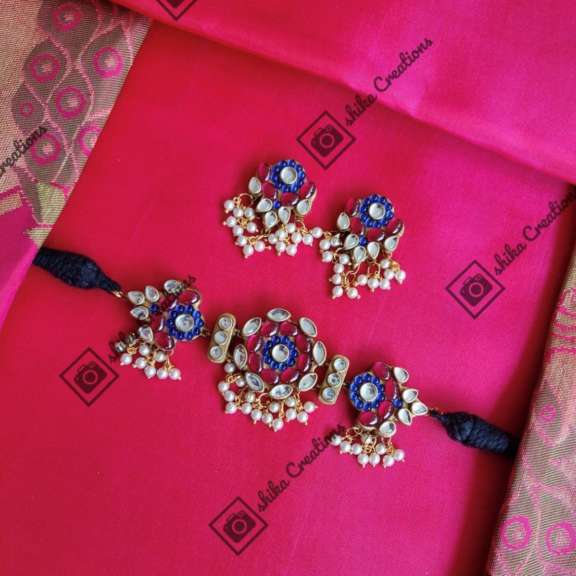 About the Product: Shika blended terracotta with kemp stones to get a brilliant new look for your outfit. Kemp stones are semi-precious stones and they dazzle in bright ambiance. What makes this more special is that this is completely handcrafted. Terracotta choker and danglers with kemp stone embellishments and pearl danglers.The neckwear comes with adjustble dori for the closure.