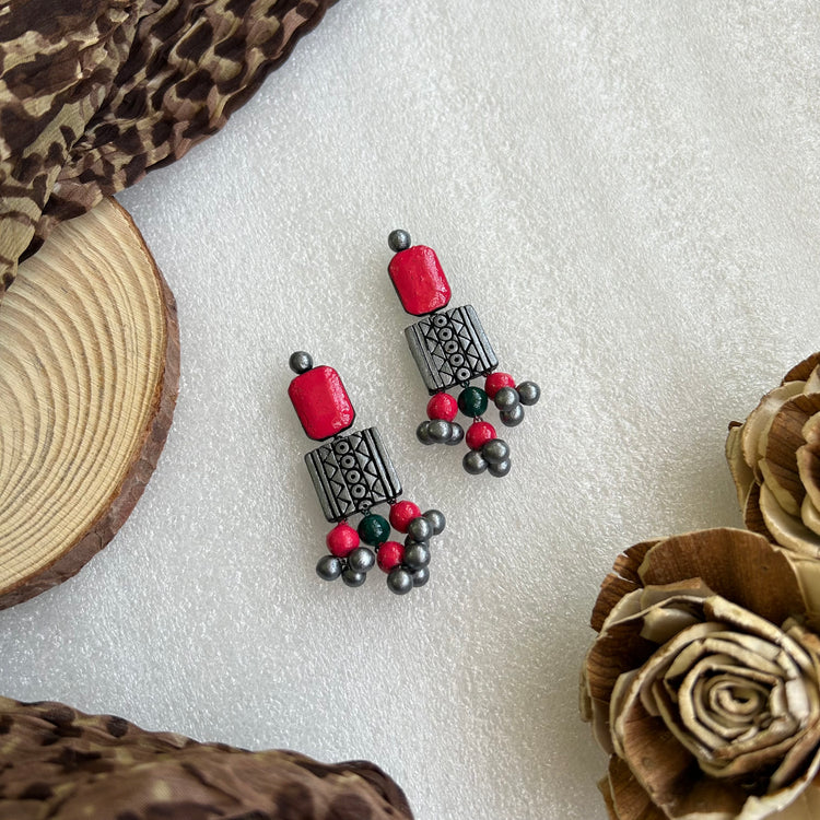Terracotta earrings, handmade terracotta danglers, clay earrings, eco-friendly jewellery, lightweight ethnic earrings, sustainable jewellery India, handmade earrings online, 3 step terracotta earrings, 4 step terracotta danglers, handcrafted clay jewellery, SHIKA Creations terracotta.