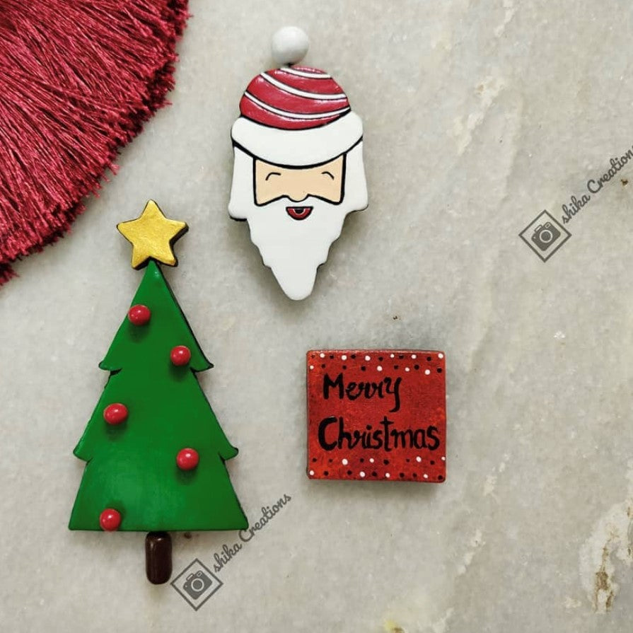 About the Product: Shika's handcrafted home decors are an epitome of creativity and innovation. Terracotta Christmas themed fridge magnets.
