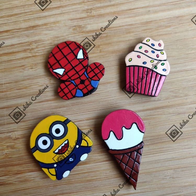About the Product: Shika's handcrafted home decors are an epitome of creativity and innovation. Terracotta assorted fridge magnets in vibrant shades.