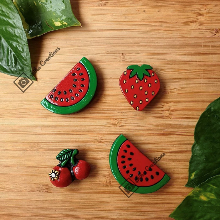 About the Product: Shika's handcrafted home decors are an epitome of creativity and innovation. Terracotta fridge magnets in vivid hues.