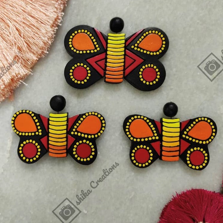 About the Product: Shika's handcrafted home decors are an epitome of creativity and innovation. Terracotta butterfly fridge magnets.