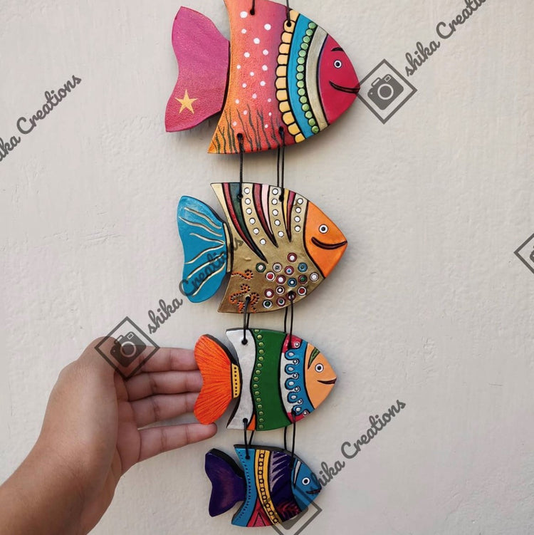 About the Product: Shika's handcrafted home decors are an epitome of creativity and innovation. Terracotta fish 4 layered wall hanging in vibrant shades. The wall hanging comes with a nylon rope to hang.