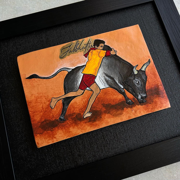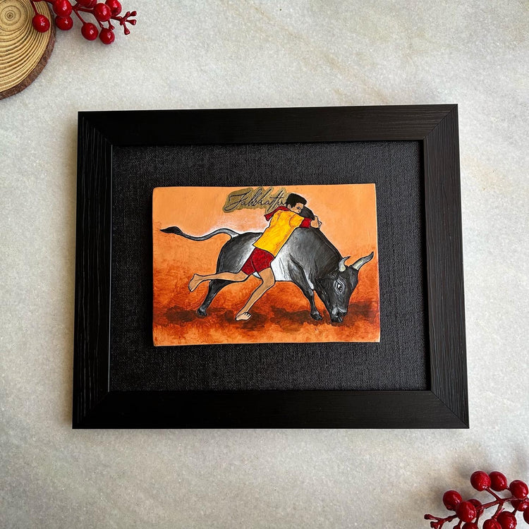 About the Product: Shika's handcrafted home decors are an epitome of creativity and innovation. Terracotta jallikattu wall picture. It comes with a 1 inch frame.