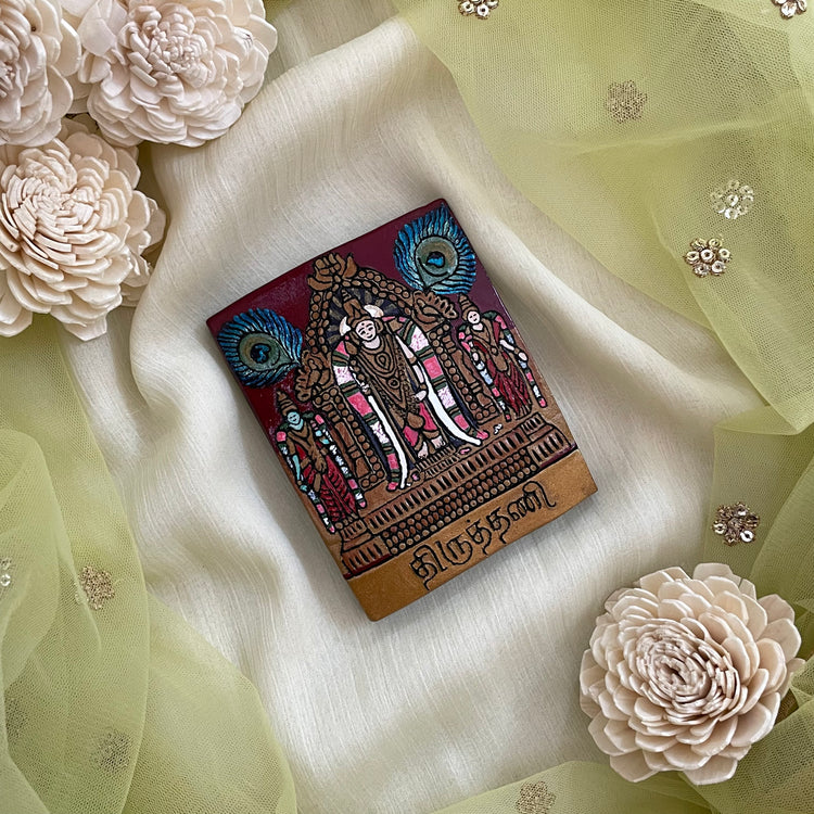 About the Product: Shika's handcrafted home decors are an epitome of creativity and innovation. Terracotta Murugar fridge magnet.