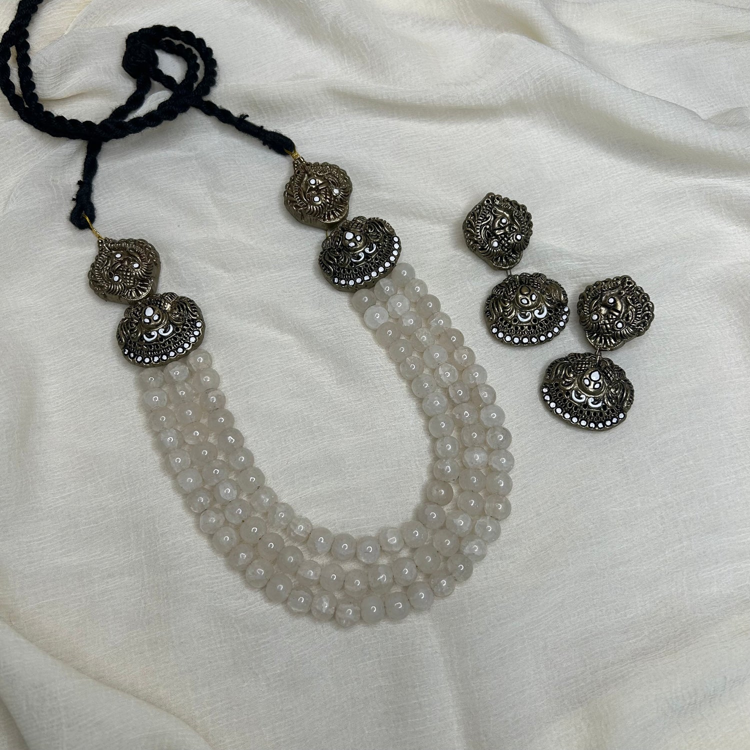 Whether you’re dressing up for a casual outing or a festive occasion, these sets offer a striking yet subtle statement. Every necklace is paired with a beautiful set of matching earrings, carefully designed to enhance the overall look and feel of the set.