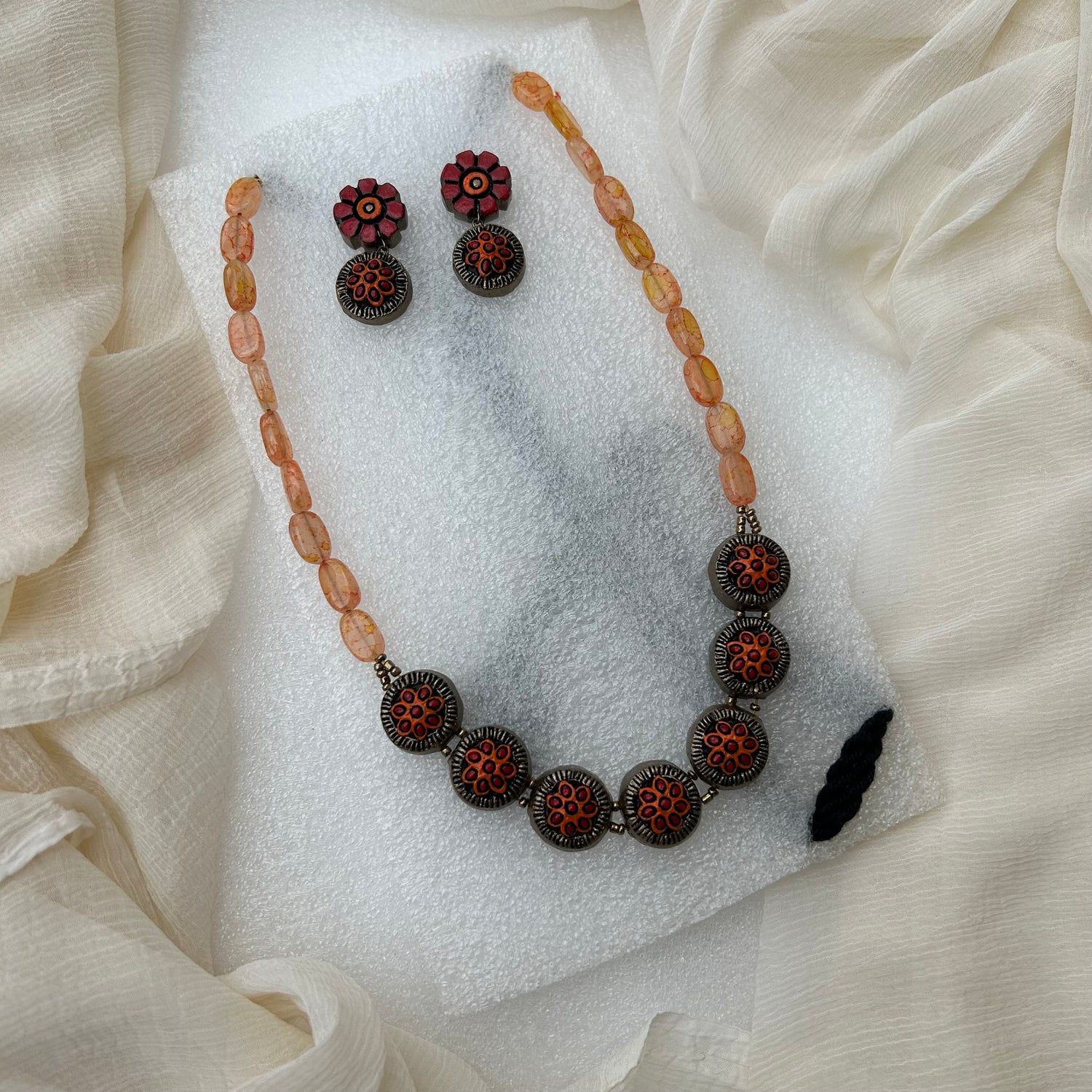 Each jewelry set in our Under 600 Collection is thoughtfully handcrafted using natural terracotta clay, giving it a raw, earthy charm that feels both grounded and graceful. To elevate its look, we’ve expertly blended the clay base with a variety of vibrant beads — including acrylic, kundan, ceramic, glass, artificial, and crackle beads — to create a piece that’s rich in texture, color, and uniqueness.