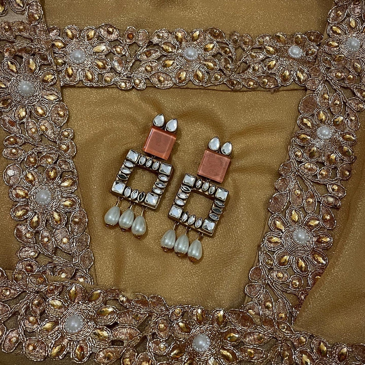 About the Product: Shika blended terracotta with kundhans to get a new stunning look for your outfit. What makes this more special is that this is completely handcrafted. Terracotta choker and danglers with peach and white kundhan stone embellishments sprinkled with pearl loreals. The neckwear comes with adjustable chain for the closure.