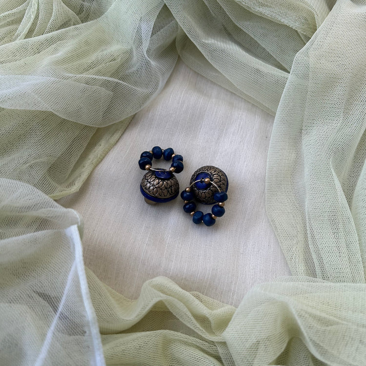 Navy Blue Terracotta Bali Jhumka Earrings | Daily wear earrings