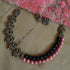 About the Product:This delicate piece of Shika is handcrafted to perfection.Your every moment deserves an elegance and we tune in. teracotta peacock half and half neckwear with studs. The neckwear comes with adjustble dori for the closure.