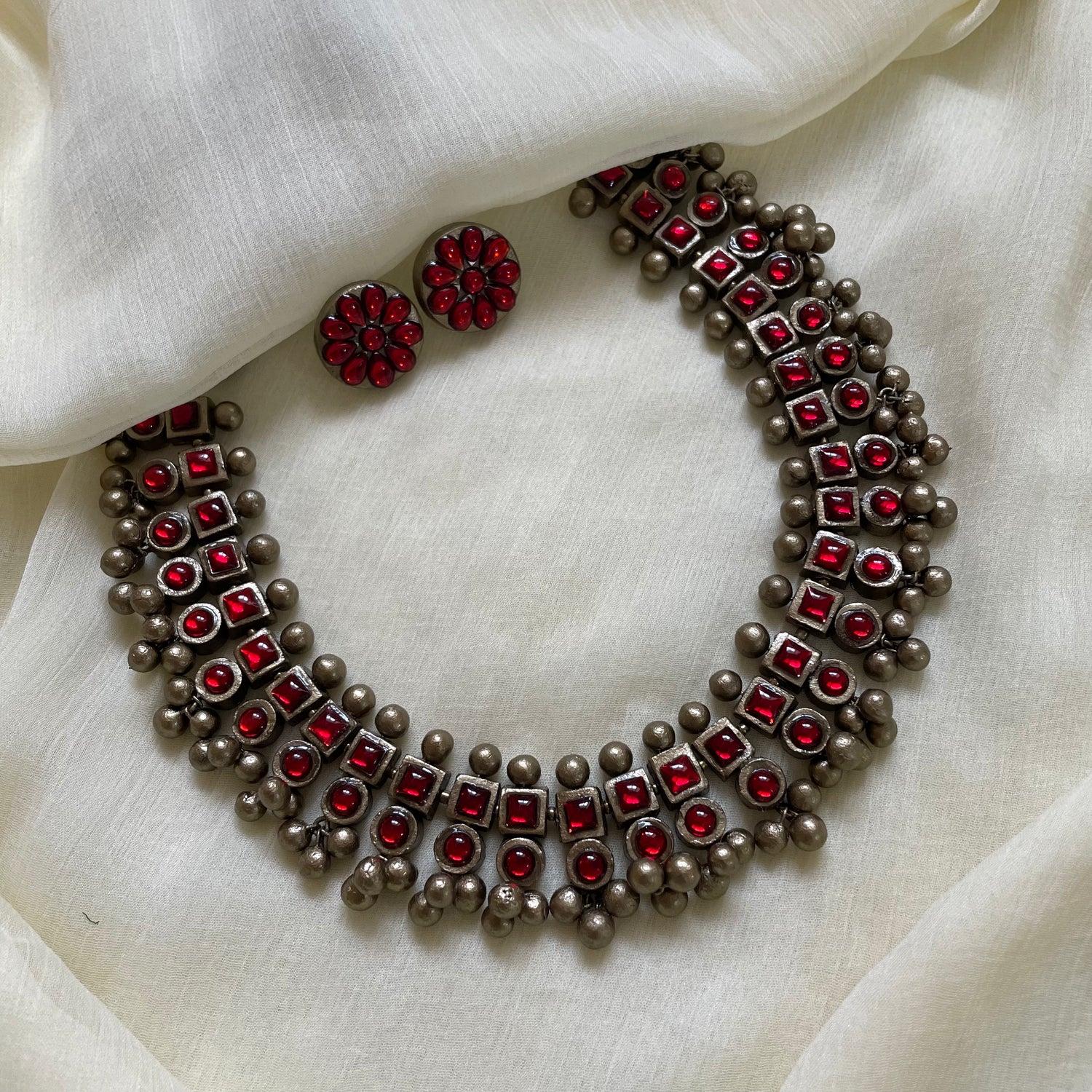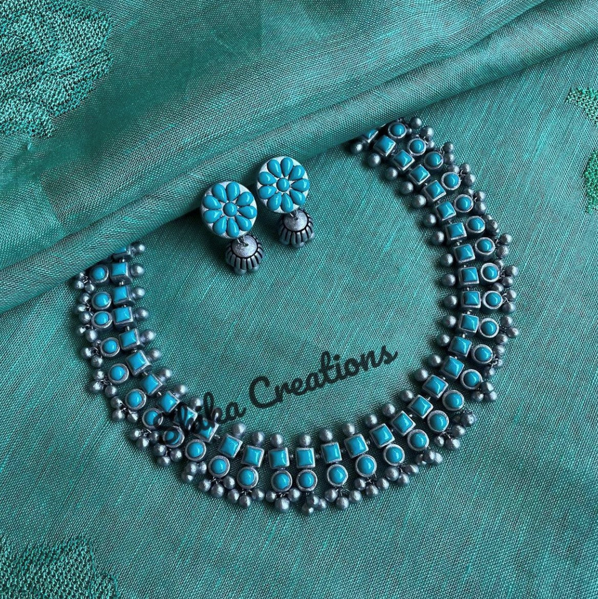 About the Product: Shika blended terracotta with kundhans to get a new stunning look for your outfit. What makes this more special is that this is completely handcrafted. Terracotta neckwear and studs with kundhan stone embellishments. The neckwear comes with adjustble chain for the closure.