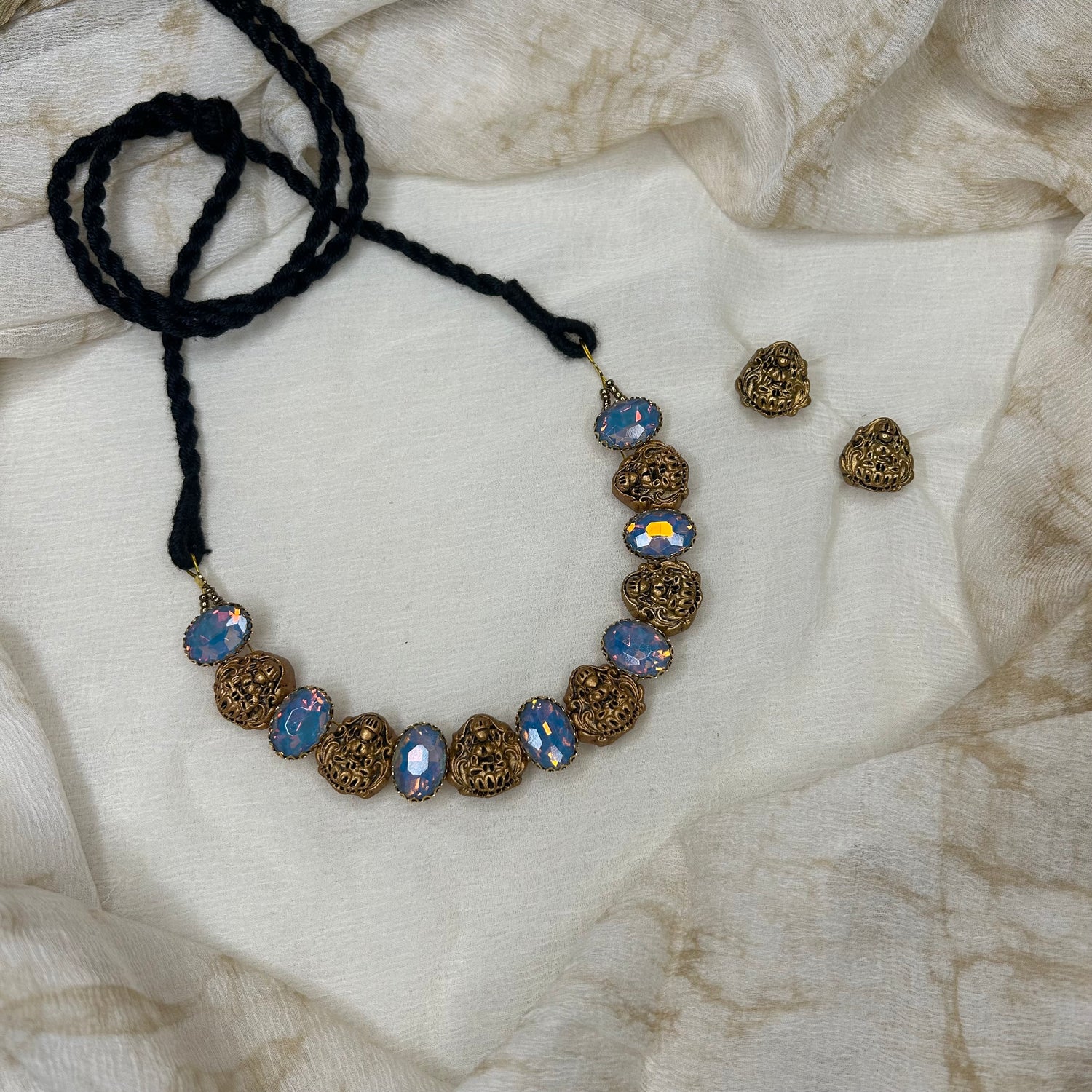 Each jewelry set in our Under 600 Collection is thoughtfully handcrafted using natural terracotta clay, giving it a raw, earthy charm that feels both grounded and graceful. To elevate its look, we’ve expertly blended the clay base with a variety of vibrant beads — including acrylic, kundan, ceramic, glass, artificial, and crackle beads — to create a piece that’s rich in texture, color, and uniqueness.