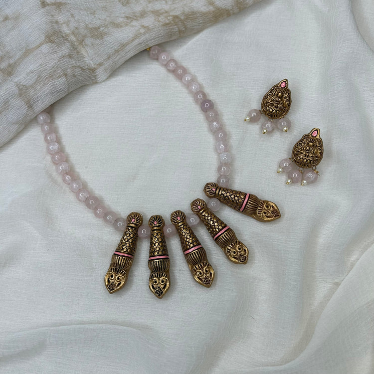Whether you’re dressing up for a casual outing or a festive occasion, these sets offer a striking yet subtle statement. Every necklace is paired with a beautiful set of matching earrings, carefully designed to enhance the overall look and feel of the set.