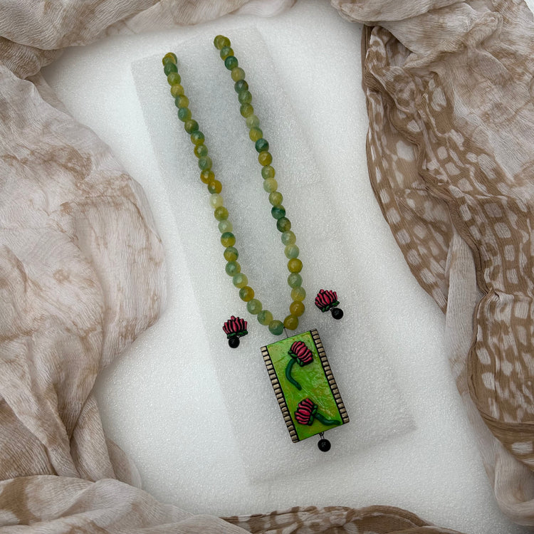 Each jewelry set in our Under 600 Collection is thoughtfully handcrafted using natural terracotta clay, giving it a raw, earthy charm that feels both grounded and graceful. To elevate its look, we’ve expertly blended the clay base with a variety of vibrant beads — including acrylic, kundan, ceramic, glass, artificial, and crackle beads — to create a piece that’s rich in texture, color, and uniqueness.